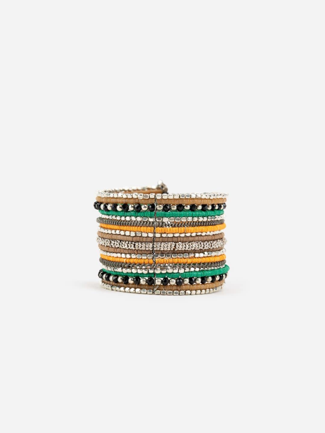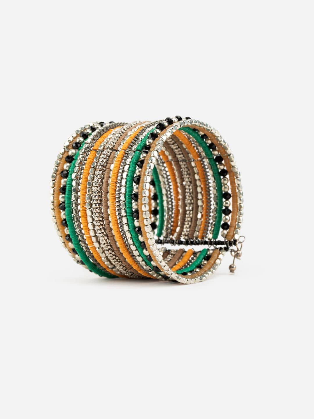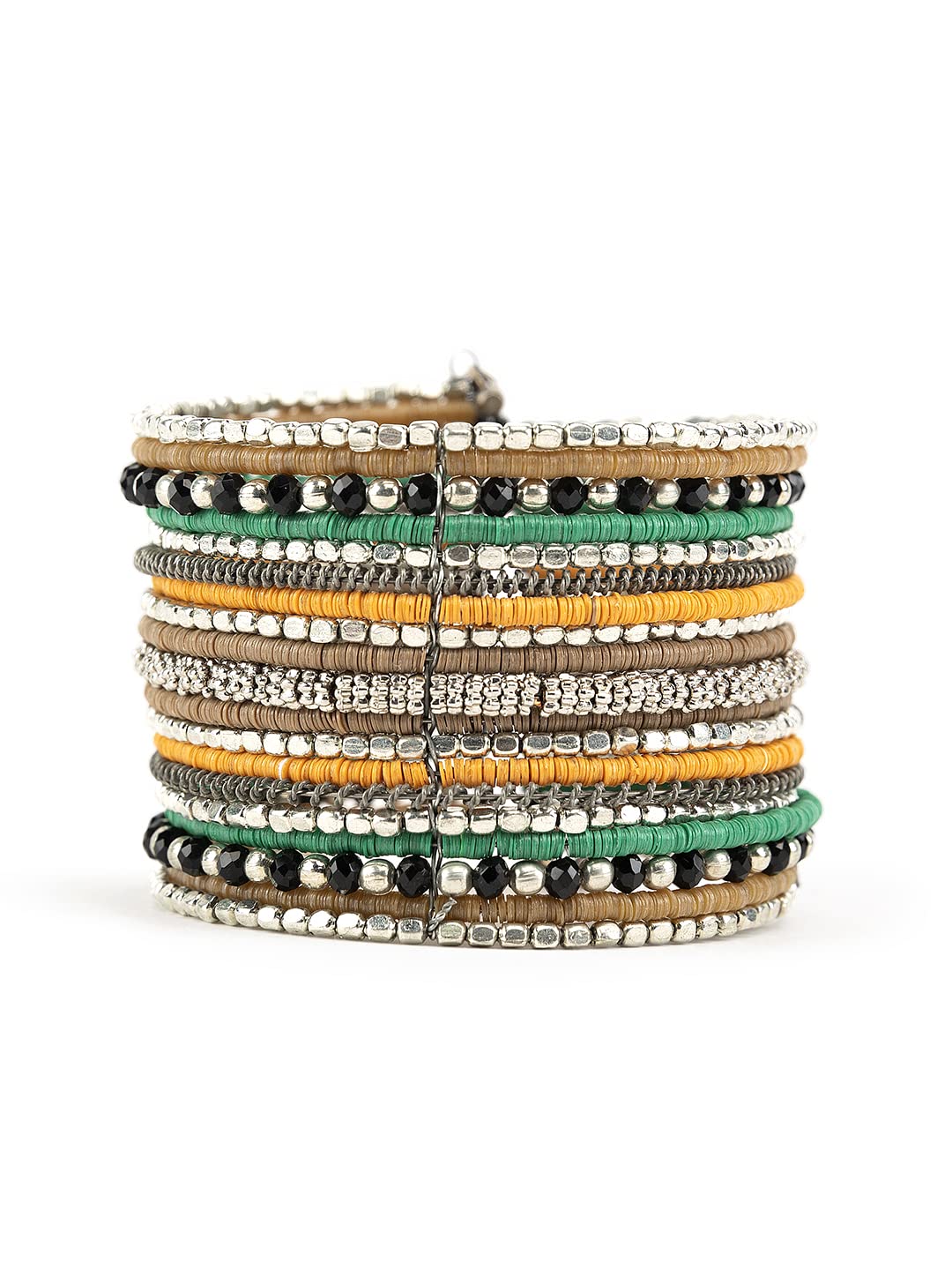 PRITA Beaded Sequin Stuffed Multilayer Cuff Bracelet