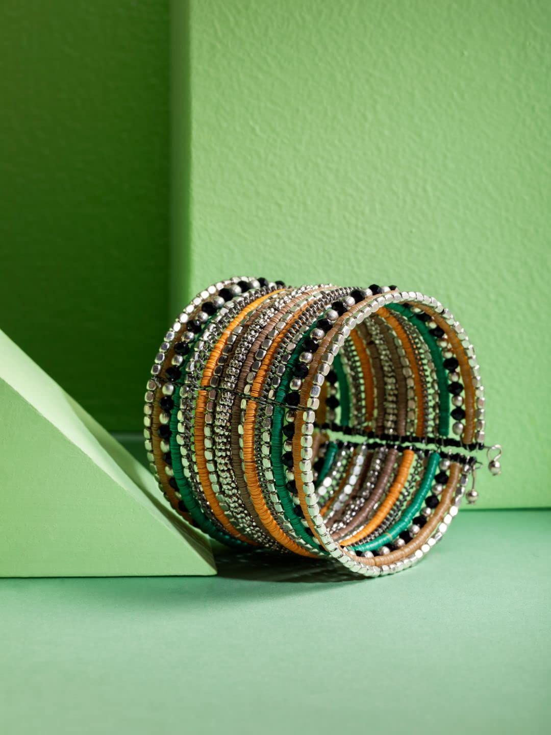 This silver-plated slip-on bracelet is beautiful. This beautiful beaded sequin multilayer cuff bracelet is stunning. This bracelet will look great with ethnic and indowestern wear.
