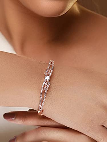 This rose gold-Colorbracelet can be sed with an interlock closure. This elegant k floral bracelet is gorgeous and adorned by s. This bracelet will look great with ethnic and occasion wear.