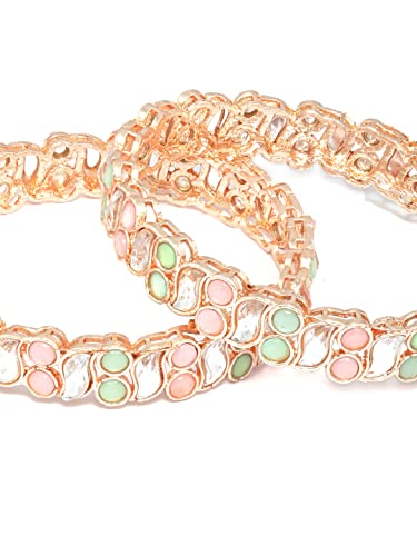 Priyaasi Rose Gold Multi Coloured Stones Set of 2 Bangles 2-8 Brass Artificial Stones
