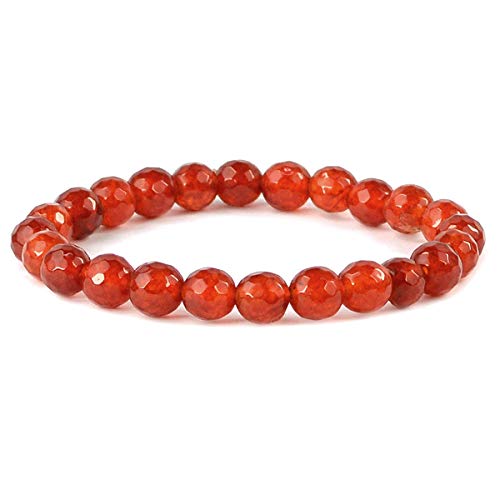 Natural Red Onyx Bracelet Crystal Stone 8 mm Diamond Cut Bead Bracelet for Reiki Healing and Crystal Healing Stones (Color : Red)