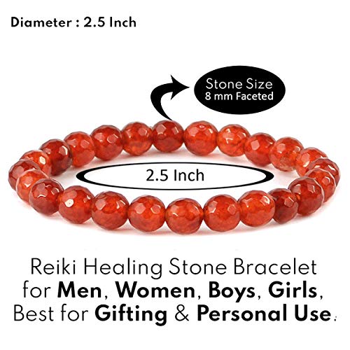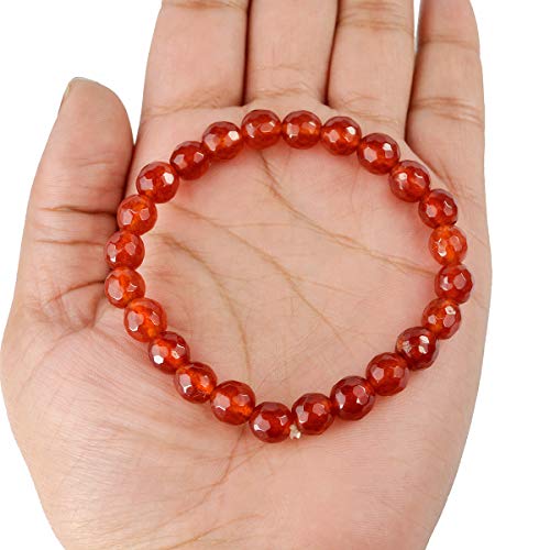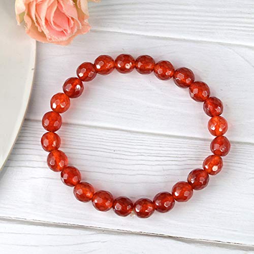 Natural Red Onyx Bracelet Crystal Stone 8 mm Diamond Cut Bead Bracelet for Reiki Healing and Crystal