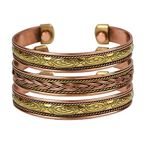 Mix Metal Copper Kada / Copper Bracelet free size Adjustable Kada / Bracelet for Men and Women (Color : Copper & Silver) Combo 3 pc
