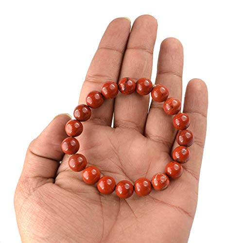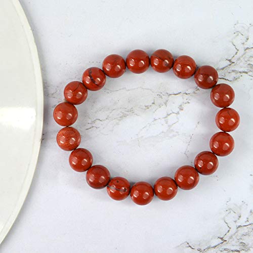 Natural Red Jasper Bracelet Crystal Stone 10mm Round Bead Bracelet for Reiki Healing and Crystal Healing Stone (Color : Red)