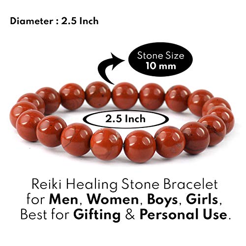 Natural Red Jasper Bracelet Crystal Stone 10mm Round Bead Bracelet for Reiki Healing and Crystal Hea