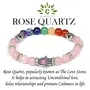 Stretchable Elastic Natural Crystal Stone Rose Quartz with 7 Chakra Bracelet | Diameter : 2.5 Inch.| Stone Size – 8 mm Beads | Shape - Round. Charged By Reiki Grand Master & Vastu Expert