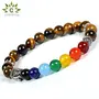Stretchable Elastic Natural Crystal Stone Tiger Eye with 7 Chakra Bracelet