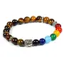 Stretchable Elastic Natural Crystal Stone Tiger Eye with 7 Chakra Bracelet | Diameter : 2.5 Inch.| Stone Size – 8 mm Beads | Shape - Round. Charged By Reiki Grand Master & Vastu Expert