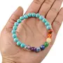 Stretchable Elastic Crystal Stone Tourquise Synthetic with 7 Chakra Bracelet | Diameter : 2.5 Inch.| Stone Size – 8 mm Beads | Shape - Round. Charged By Reiki Grand Master & Vastu Expert