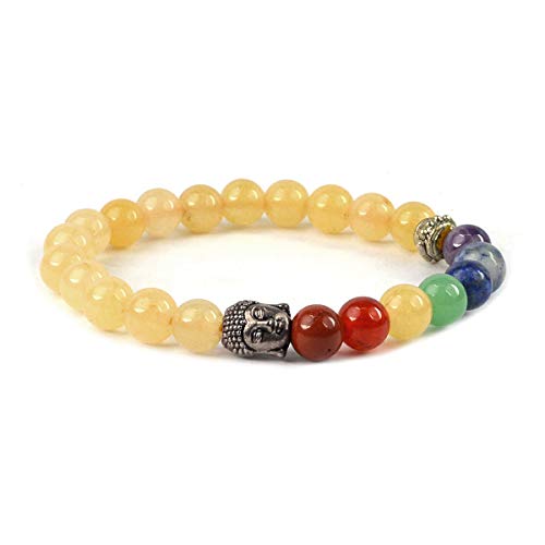Natural Yellow Aventurine Bracelet 7 Chakra with Buddha Head Crystal Stone Bracelet for Reiki Healing and Crystal Healing Stones (Color : Multi)