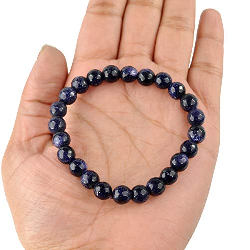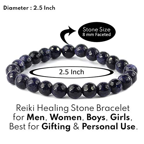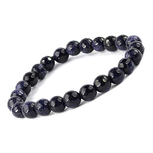 Natural Goldstone Blue Bracelet Crystal Stone 8 mm Diamond Cut Bead Bracelet for Reiki Healing and Crystal Healing Stones (Color : Blue)