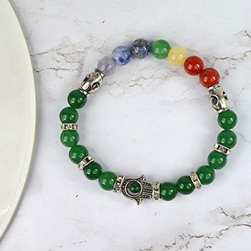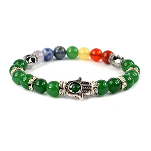 Stretchable Elastic Natural Crystal Stone Green Aventurine with 7 Chakra Bracelet | Diameter : 2.5 Inch.| Stone Size – 8 mm Beads | Shape - Round. Charged By Reiki Grand Master & Vastu Expert