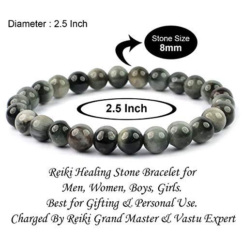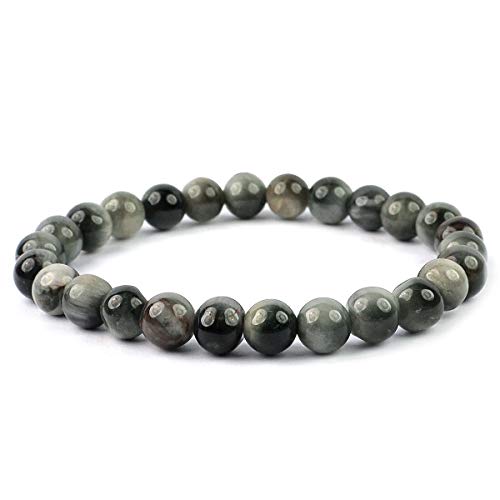 Cats Eye Bracelet Natural Crystal Stone 8 mm Beads Bracelet Round Shape for Reiki Healing and Crystal Healing Stone (Color : Grey)