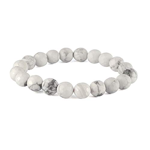 Natural Howlite Bracelet Crystal Stone 10mm Diamond Cut Beads Bracelet for Reiki Healing and Crystal Healing Stones (Color : White & Grey)