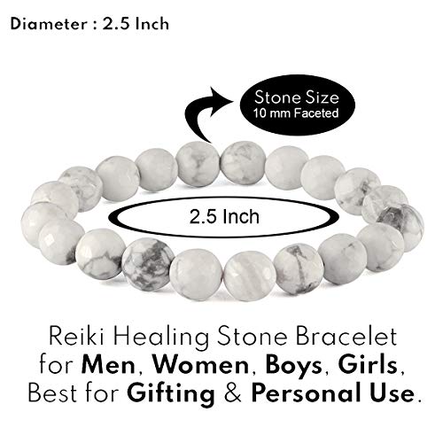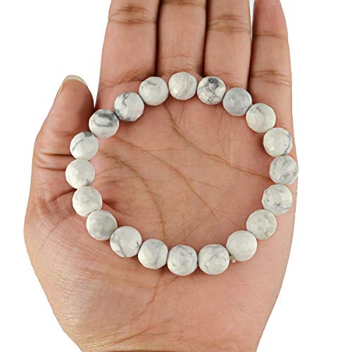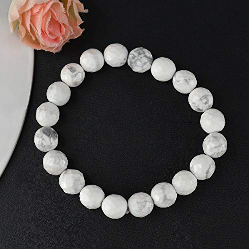 Natural Howlite Bracelet Crystal Stone 10mm Diamond Cut Beads Bracelet for Reiki Healing and Crystal