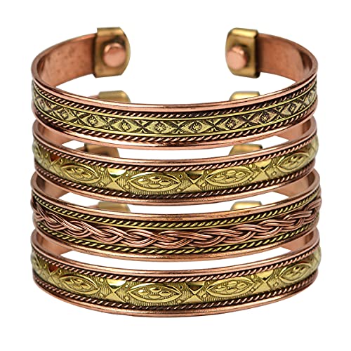 Mix Metal Copper Kada / Copper Bracelet free size Adjustable Kada / Bracelet for Men and Women (Color : Copper & Silver) Combo 4 pc