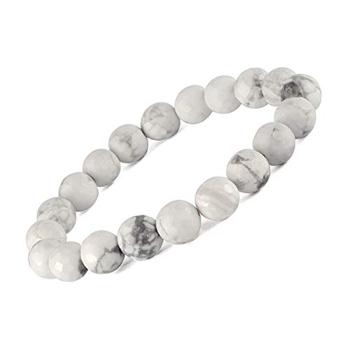 Natural Howlite Bracelet Crystal Stone 10 mm Faceted Bead Bracelet for Reiki Healing and Crystal Healing Stone (Color : White & Grey)