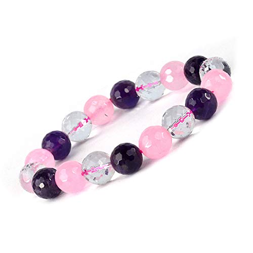 Natural Mind Body Soul Bracelet Crystal Stone 10 mm Faceted Bead Bracelet for Reiki Healing and Crystal Healing Stone (Color : Multi)