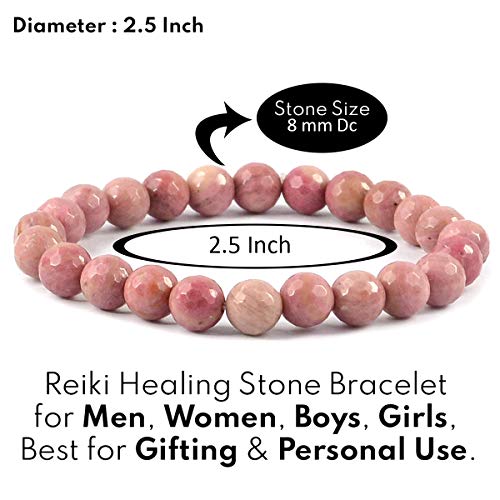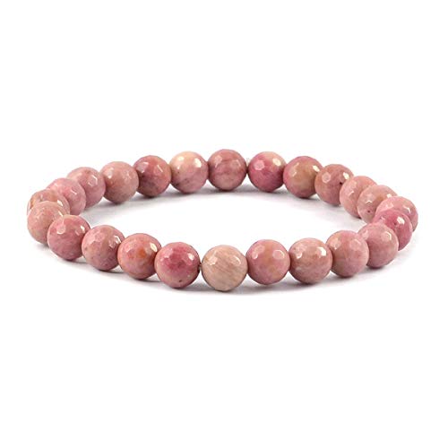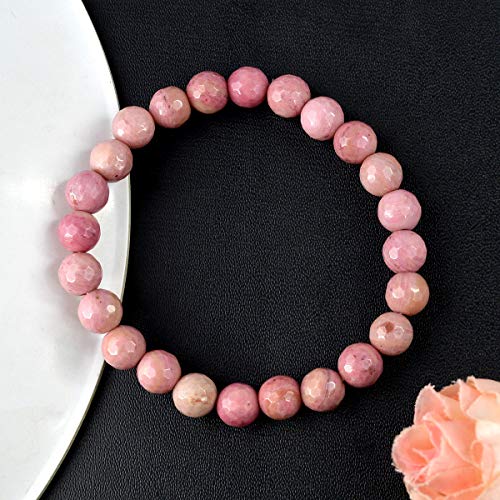 Natural Rhodochrosite Bracelet Crystal Stone 8 mm Diamond Cut Bead Bracelet for Reiki Healing and Crystal Healing Stones (Color : Pink)