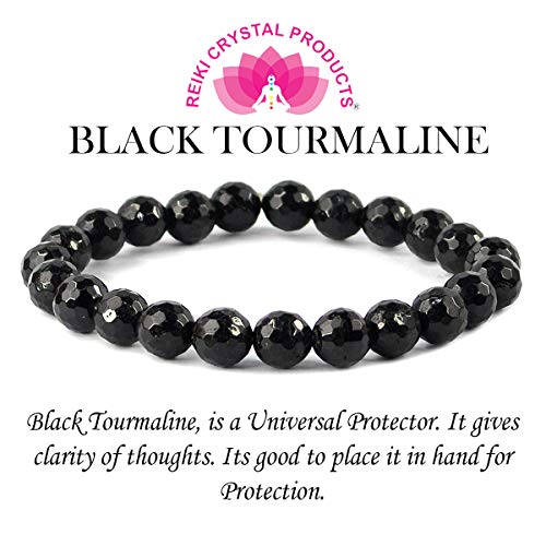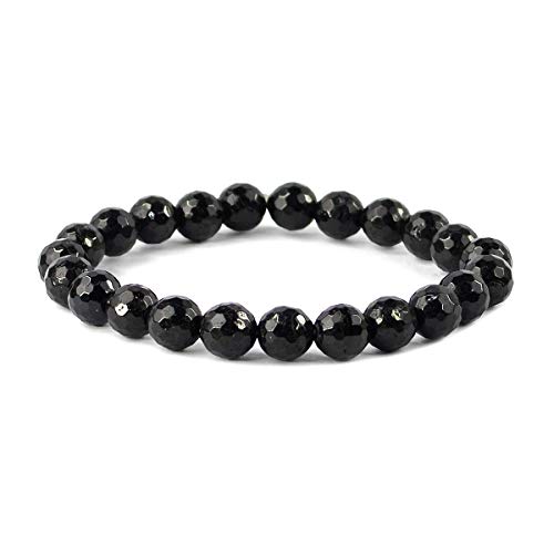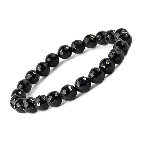 Natural AAA Black Tourmaline Bracelet Crystal Stone 8 mm Diamond Cut Bead Bracelet for Reiki Healing and Crystal Healing Stones (Color : Black)