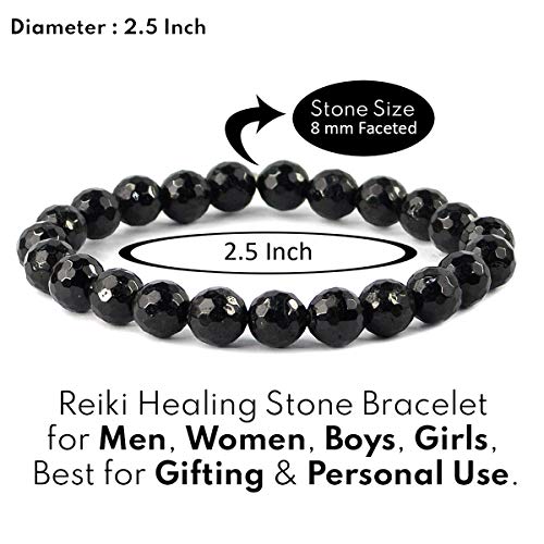 Natural AAA Black Tourmaline Bracelet Crystal Stone 8 mm Diamond Cut Bead Bracelet for Reiki Healing