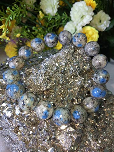Crystal Cave Exports Natural K2 Stone (Blue Azurite) Natural Bracelet K2 Jasper Bracelet Azurite Granite Natural Jasper Stone Bracelet Azurite in Granite 12 mm What is K2 Granite? "K2 Granite" also known as "K2 Jasper" and "raindrop azurite" is an extremely interesting rock and lapidary material from the Skardu area of northern Pakistan. K2 granite is named after a mountain in the Karakoram Range near the border between Pakistan and China. K2 also known as "Mount Godwin Austen" is the second-highest mountain in the world. The azurite granite is found in colluvium near the base of the mountain. It is in a very remote area visited by very few people. K2 attracts a lot of attention at gem and mineral shows.