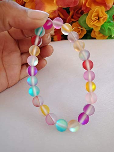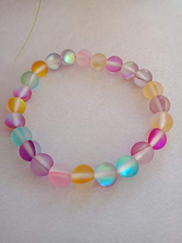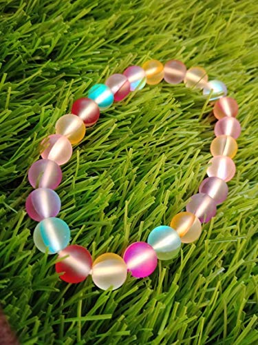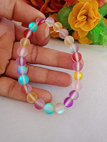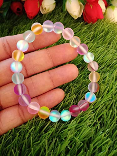 Crystal Cave Exports Matte Rainbow Aura Quartz 8 MM Bracelet Divine Feminine Light - Spiritual Growth - Intuition - Higher Self Awareness Crystal Healing Balance Bracelet. aura quartz are crystals of spiritual elevation remarkable for their powers of guidance and expansion of the soul. They provide serenity and peace during meditation deepening one's attunement to the Divine and opening gateways to the angelic realm. The Angel Aura Quartz is said to help with insight and connection to the divine and cosmic consciousness. It helps heal and balance all the Chakras and is generally regarded as crystals that helps optimize your abilities. This is why Angel Aura Quartz is known as the Crystal of New Horizons and Divine Connection. Aura Quartz crystals provide a calm relaxing effect on the emotional body and are soothing and healing to the aura. They are exceptional for releasing negativity and stress old wounds and long-held doubts about one's self-worth.