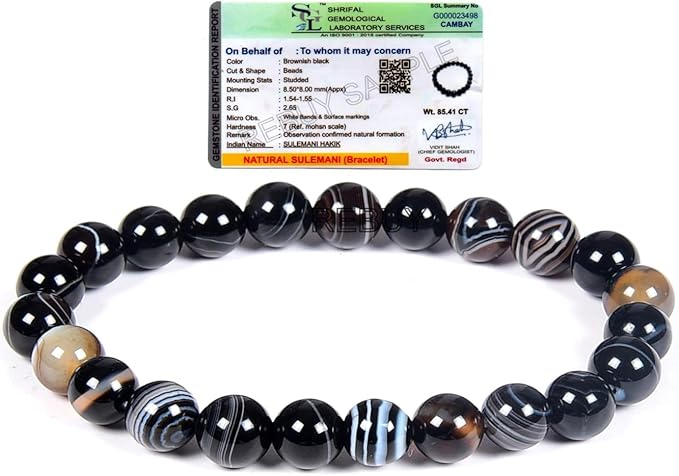 PRODUCT DETAILS:- Stone type: Sulemani Hakik | Bead Size & Shape: 8mm Round | Bracelet Size: 7.5inch | Color: Black