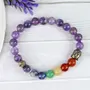 Reiki Crystal Products Natural Amethyst Bracelet with 7 Chakra Buddha Head 8mm Round Bead Bracelet for Reiki Healing and Crystal Healing Stones