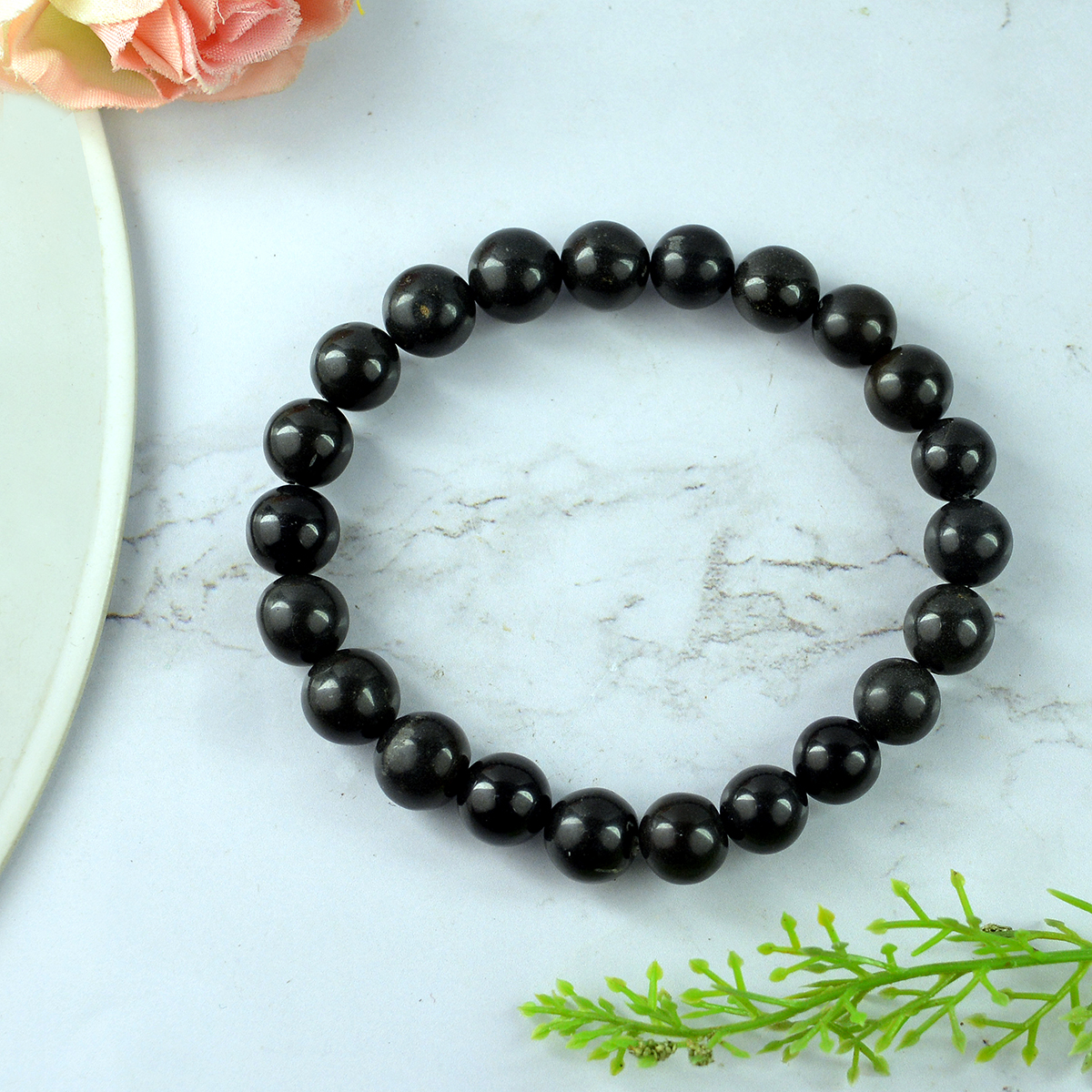 Stretchable Elastic Handmade Natural Crystal Stone Black Agate Bracelet