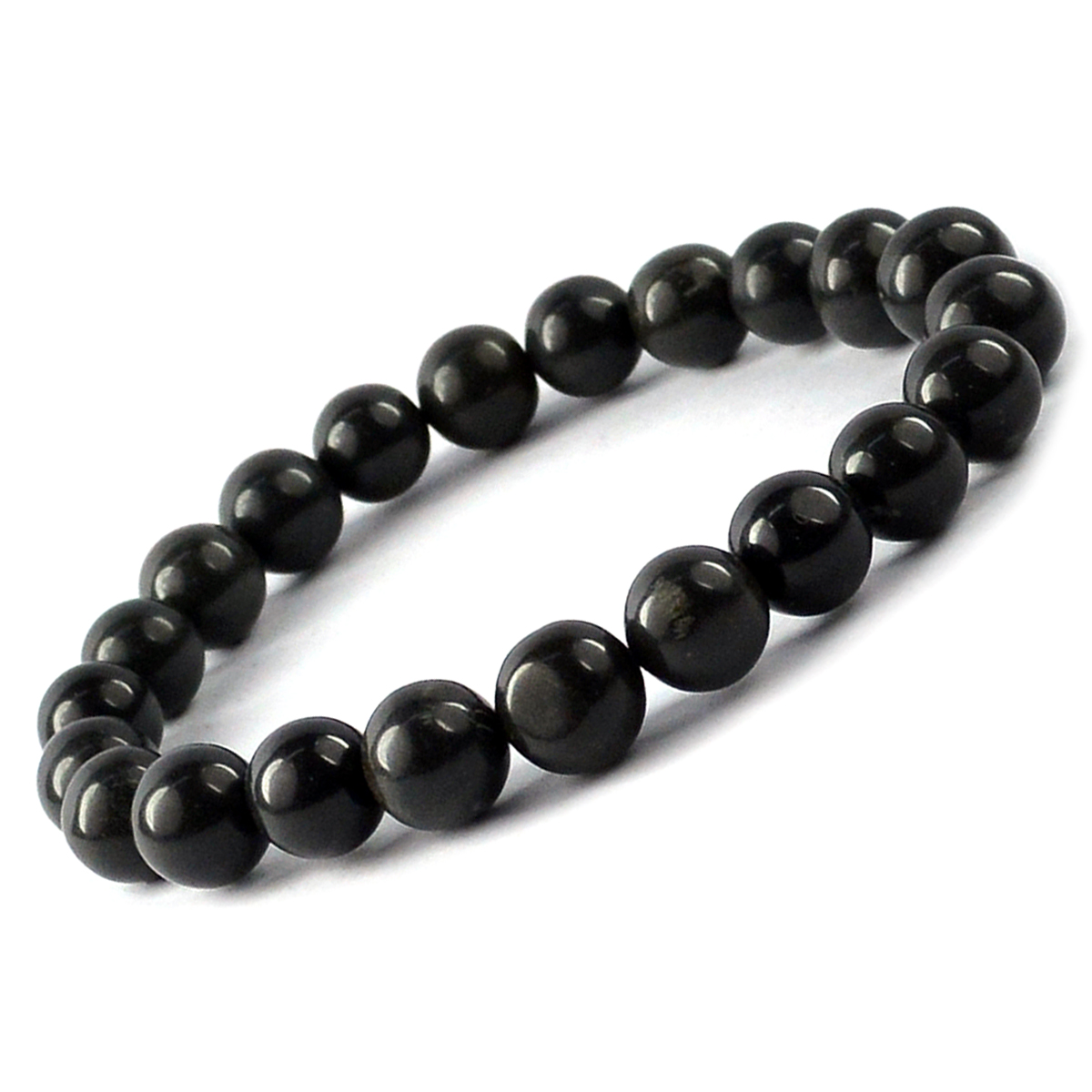 Reiki Crystal Products Natural Black Agate Bracelet Crystal Stone 8mm Round Bead Bracelet for Reiki