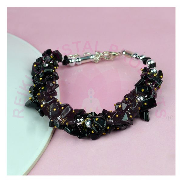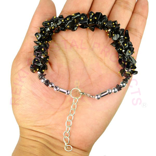 Reiki Crystal Products Natural Black Agate Bracelet Crystal Stone Chip Bead Bracelet for Reiki Healing and Crystal Healing Stones