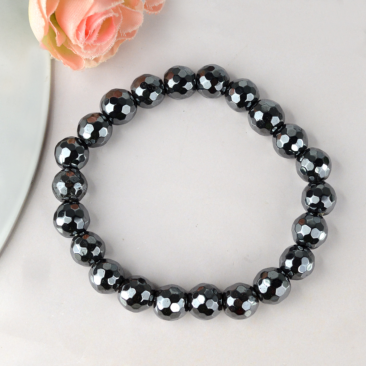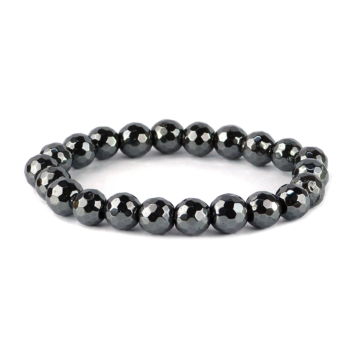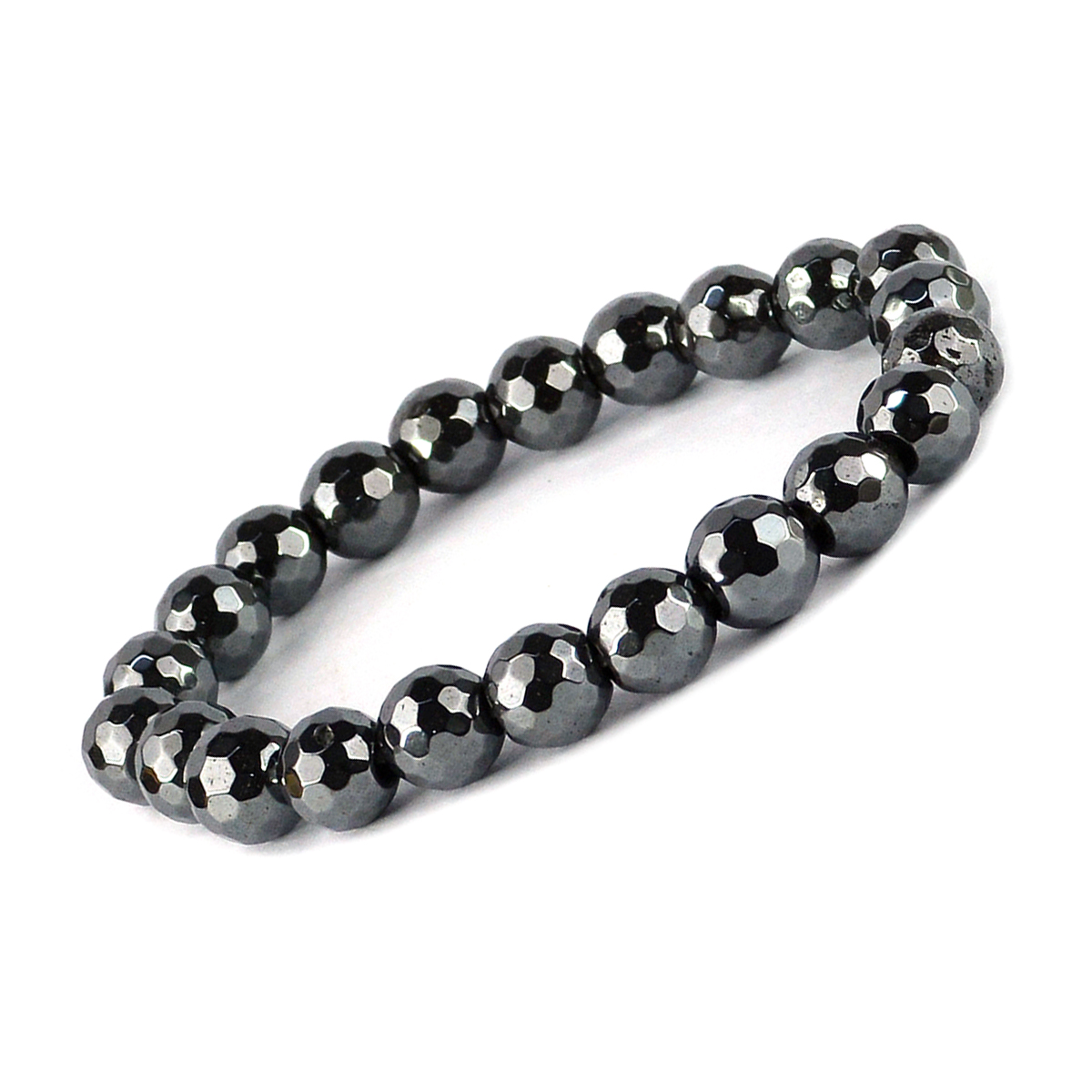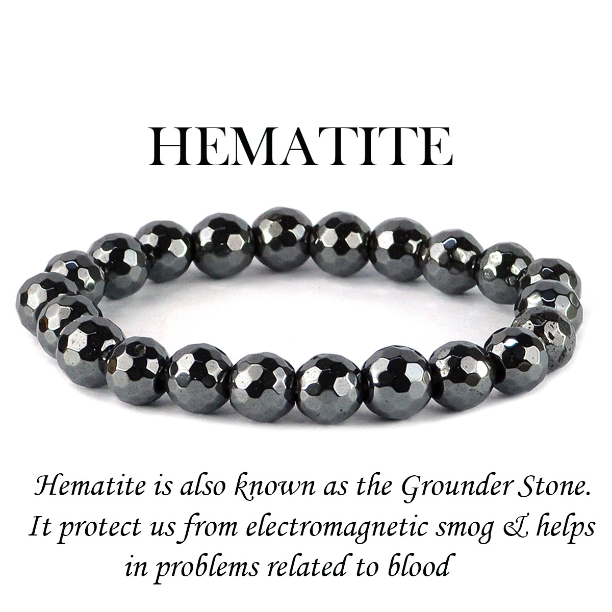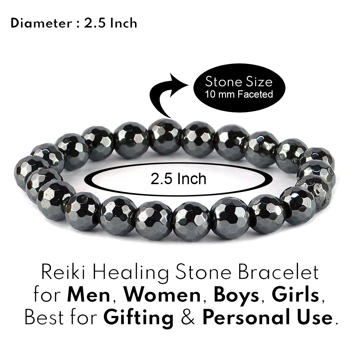 Reiki Crystal Products Natural Hematite Bracelet Crystal Stone 10mm Faceted Bracelet for Reiki Healing and Crystal Healing Stones