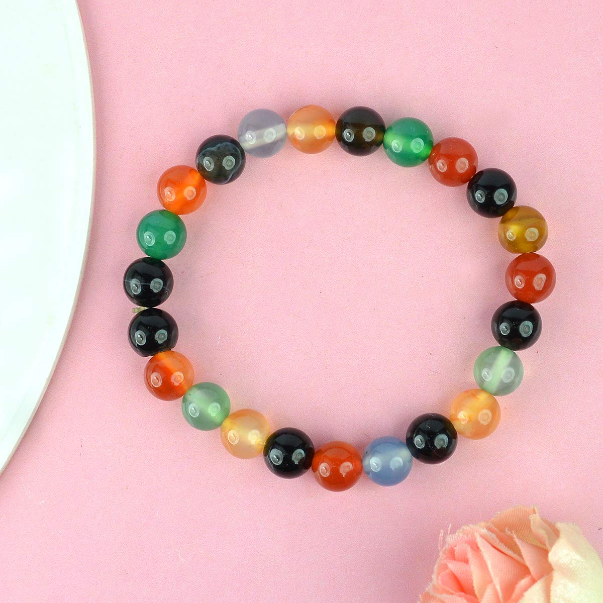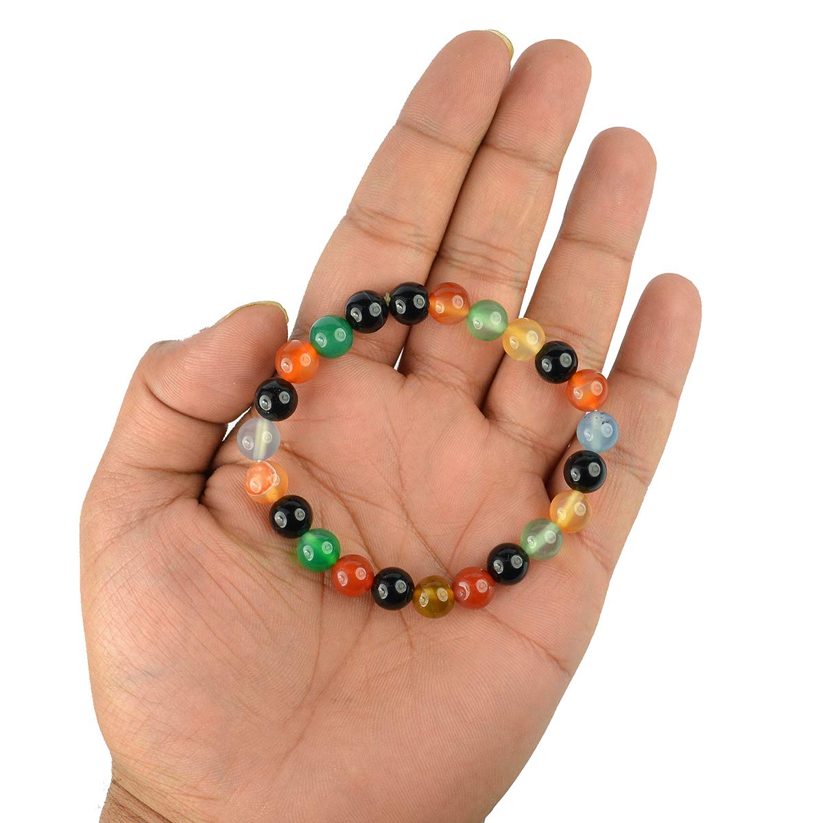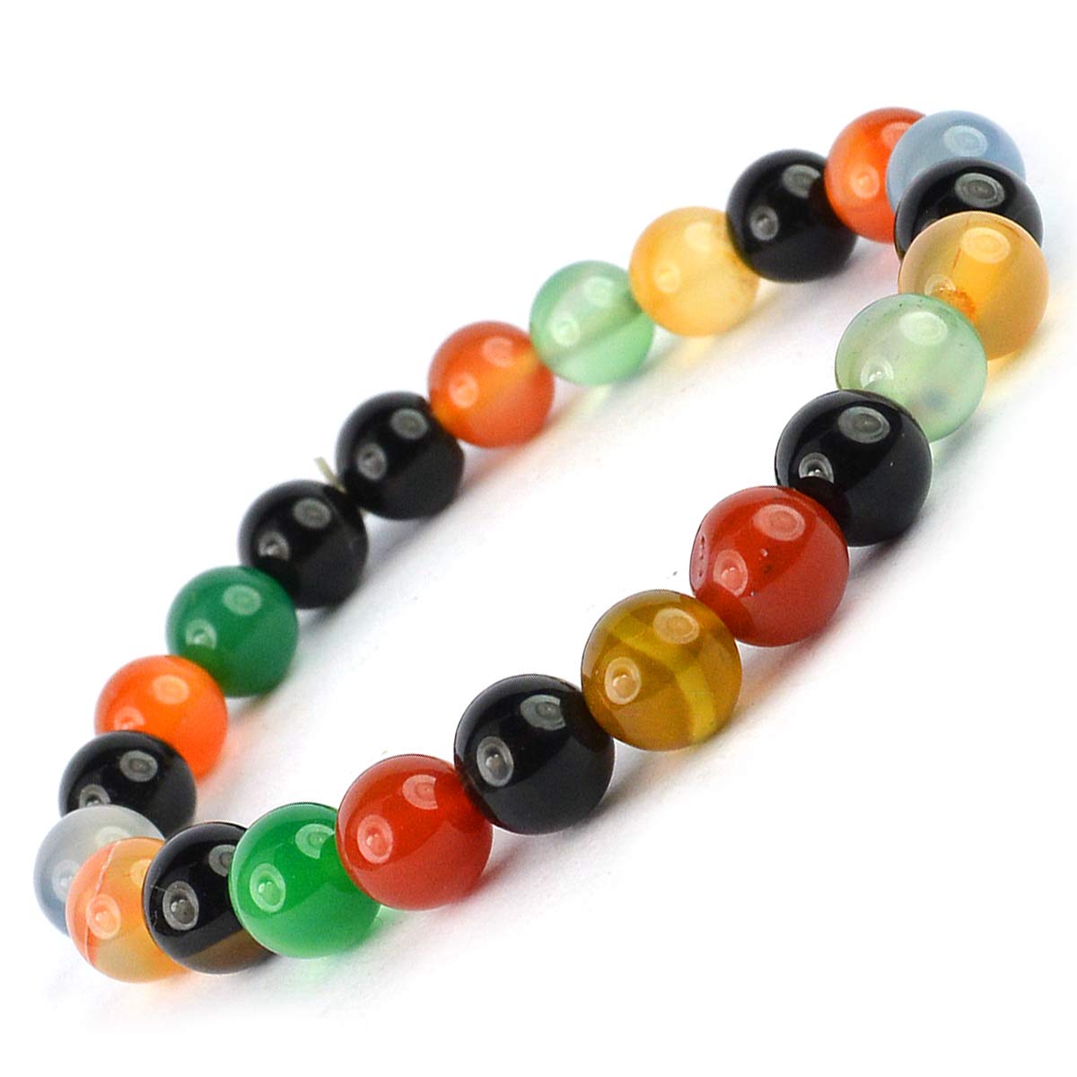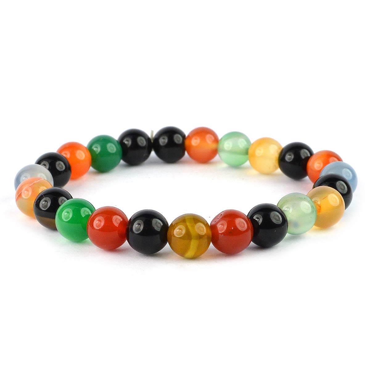Reiki Crystal Products Natural Multi Onyx Bracelet Crystal Stone 8mm Round Bead Bracelet for Reiki Healing and Crystal Healing Stones