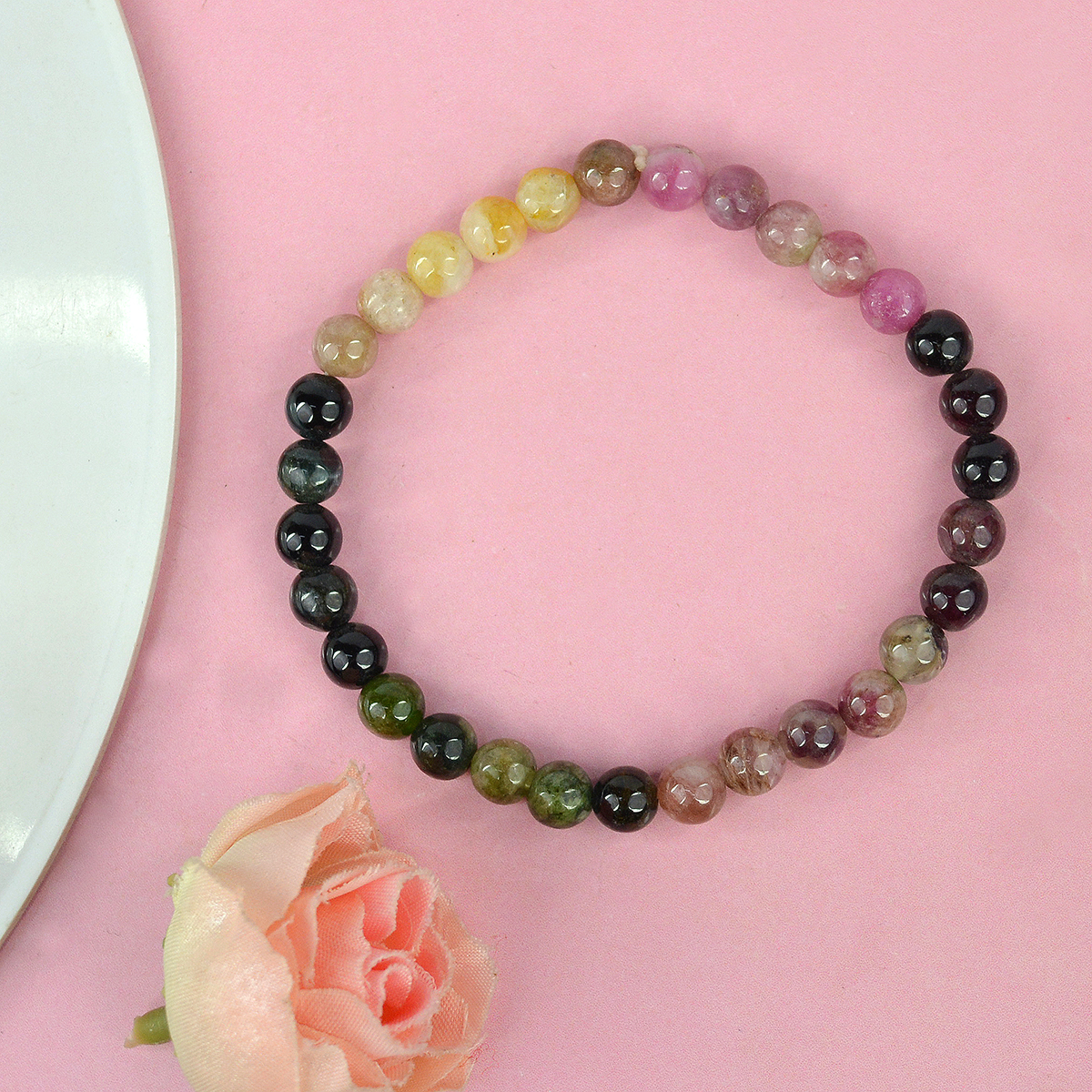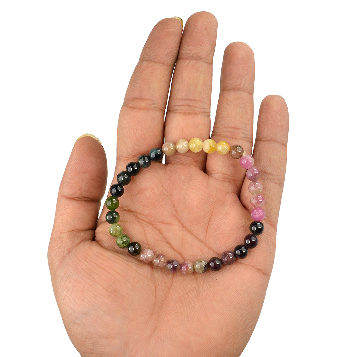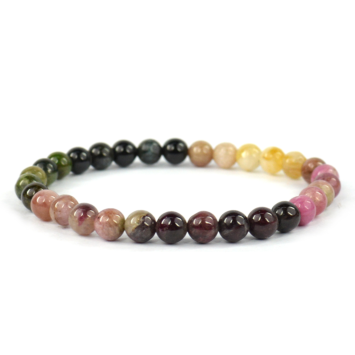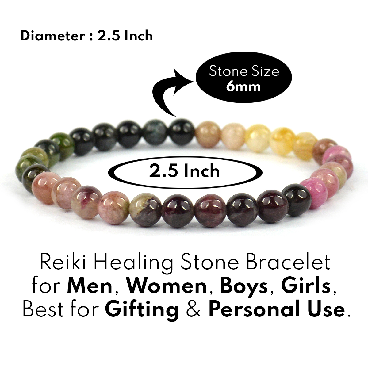 Reiki Crystal Products Natural Multi Tourmaline Bracelet Crystal Stone 6 mm Round Bead Bracelet for Reiki Healing and Crystal Healing Stones