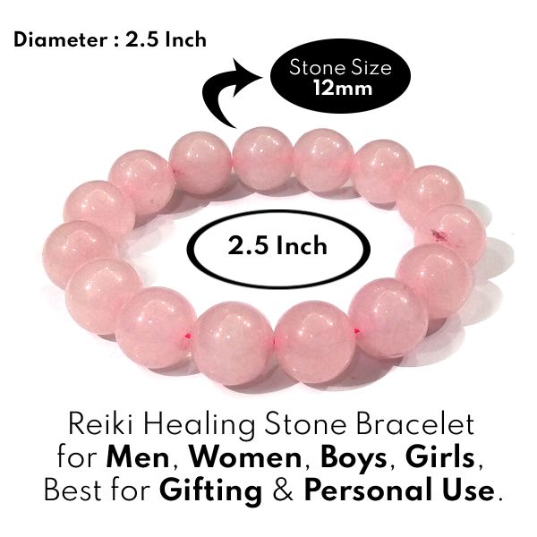 Reiki Crystal Products Natural Rose Quartz Bracelet Crystal Stone 12mm Round Bead Bracelet for Reiki Healing and Crystal Healing Stones