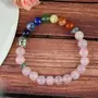 Reiki Crystal Products Natural Rose Quartz Bracelet with 7 Chakra Buddha Head 8mm Round Bead Bracele