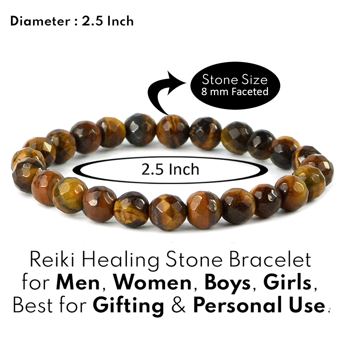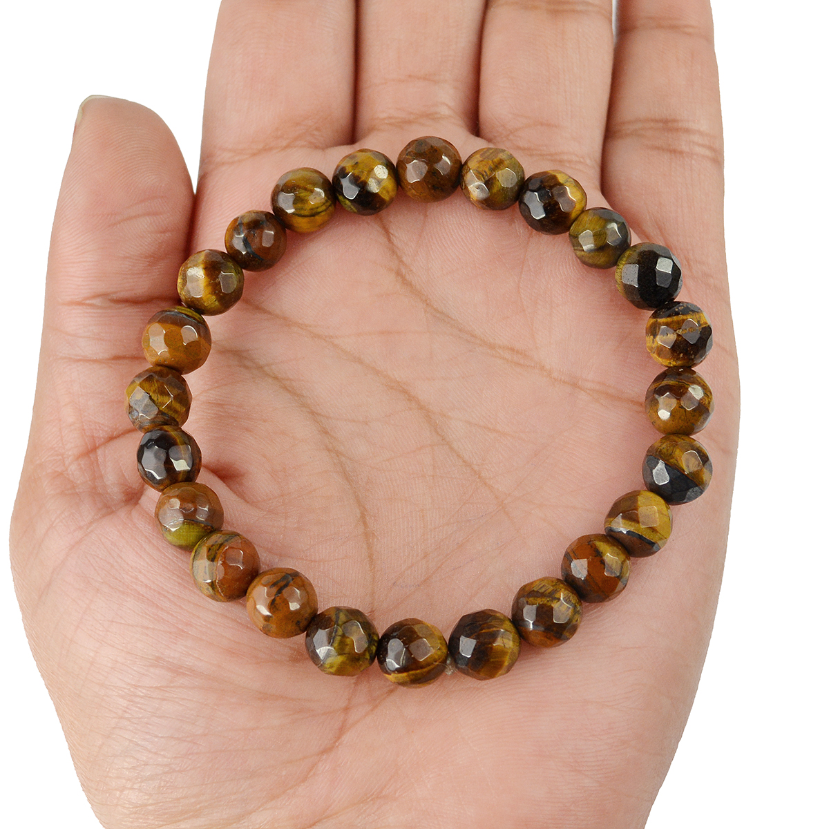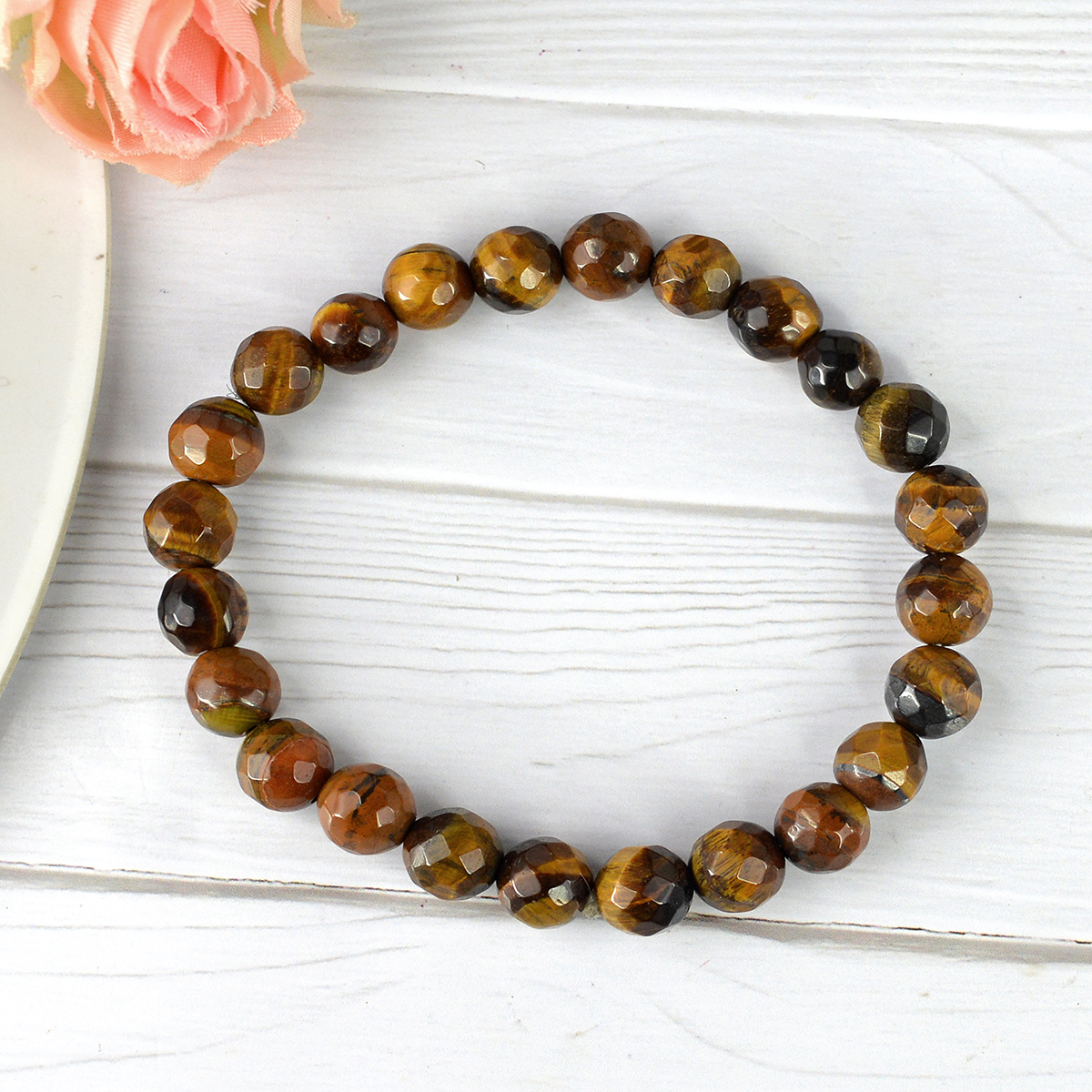 Reiki Crystal Products Natural Tiger Eye Bracelet Crystal Stone 8mm Faceted Bracelet for Reiki Healing and Crystal Healing Stones