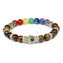Reiki Crystal Products Natural Tiger Eye Bracelet with 7 Chakra Hamsa Charm 8mm Round Bead Bracelet
