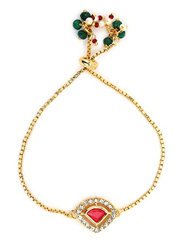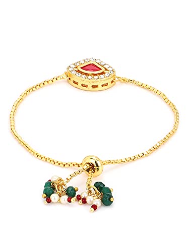 Ruby Raang Women's Mixed Metal Artificial Kundan Bracelets - Traditional Jewellery Set for Women (Gold )