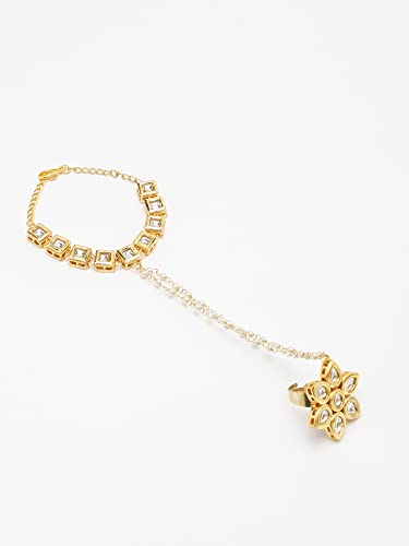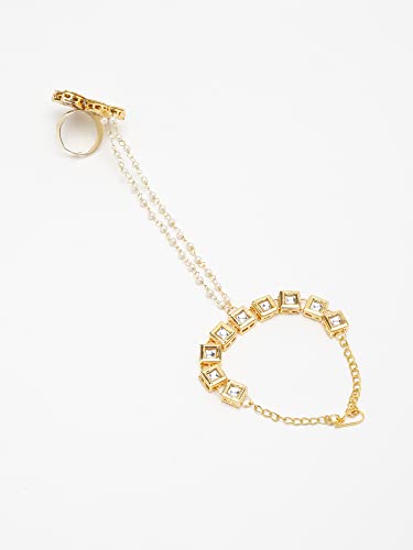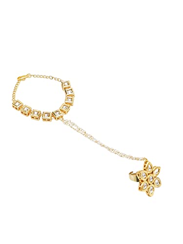 Ruby Raang Women's Mixed Metal Artificial Kundan Bracelets - Traditional Jewellery Set for Women (White)