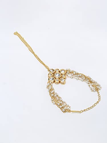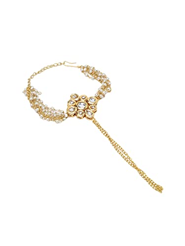 Ruby Raang Women's Mixed Metal Artificial Kundan Bracelets - Traditional Jewellery Set for Women (White)