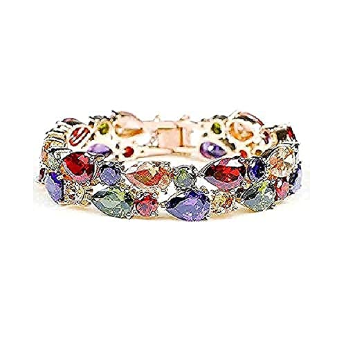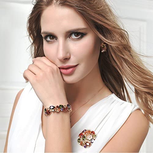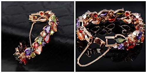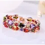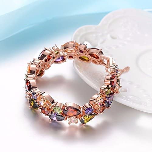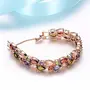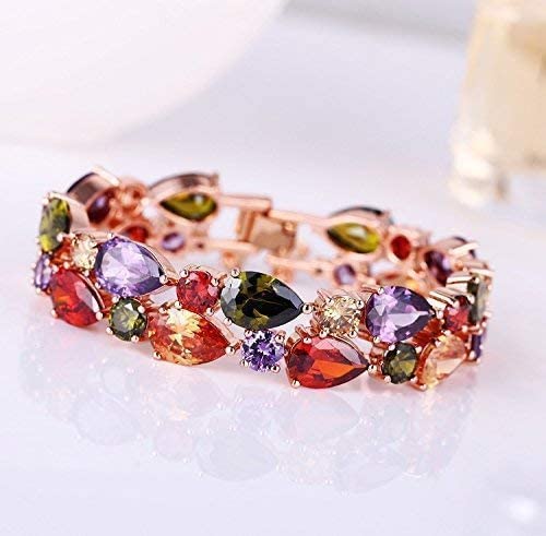 A lavish and luxurious piece for special occasions! Romantic Colorful and Glamorous combined with 18k Gold plating- This must-have design with breath taking beauty in Rose Gold Plating bracelet has all the colors of life. An awesome piece for your parties or Functions- one enough to turn the around the heads and grab you tons of Compliments. It wraps comfortably and beautifully around your wrist.