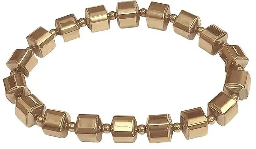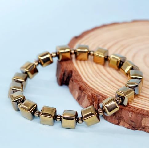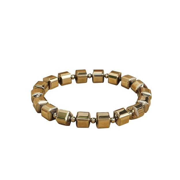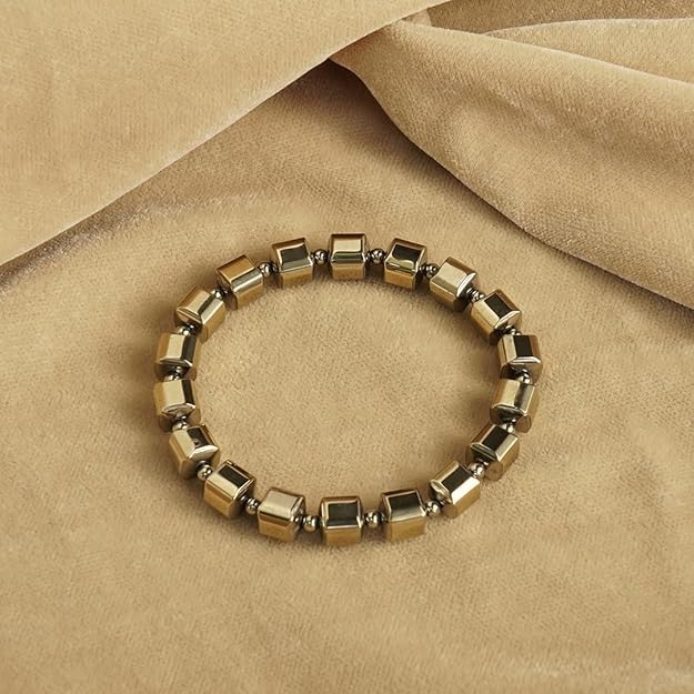 Sukhad Natural Pyrite Cube Beaded Stretch Bracelet Golden Metallic