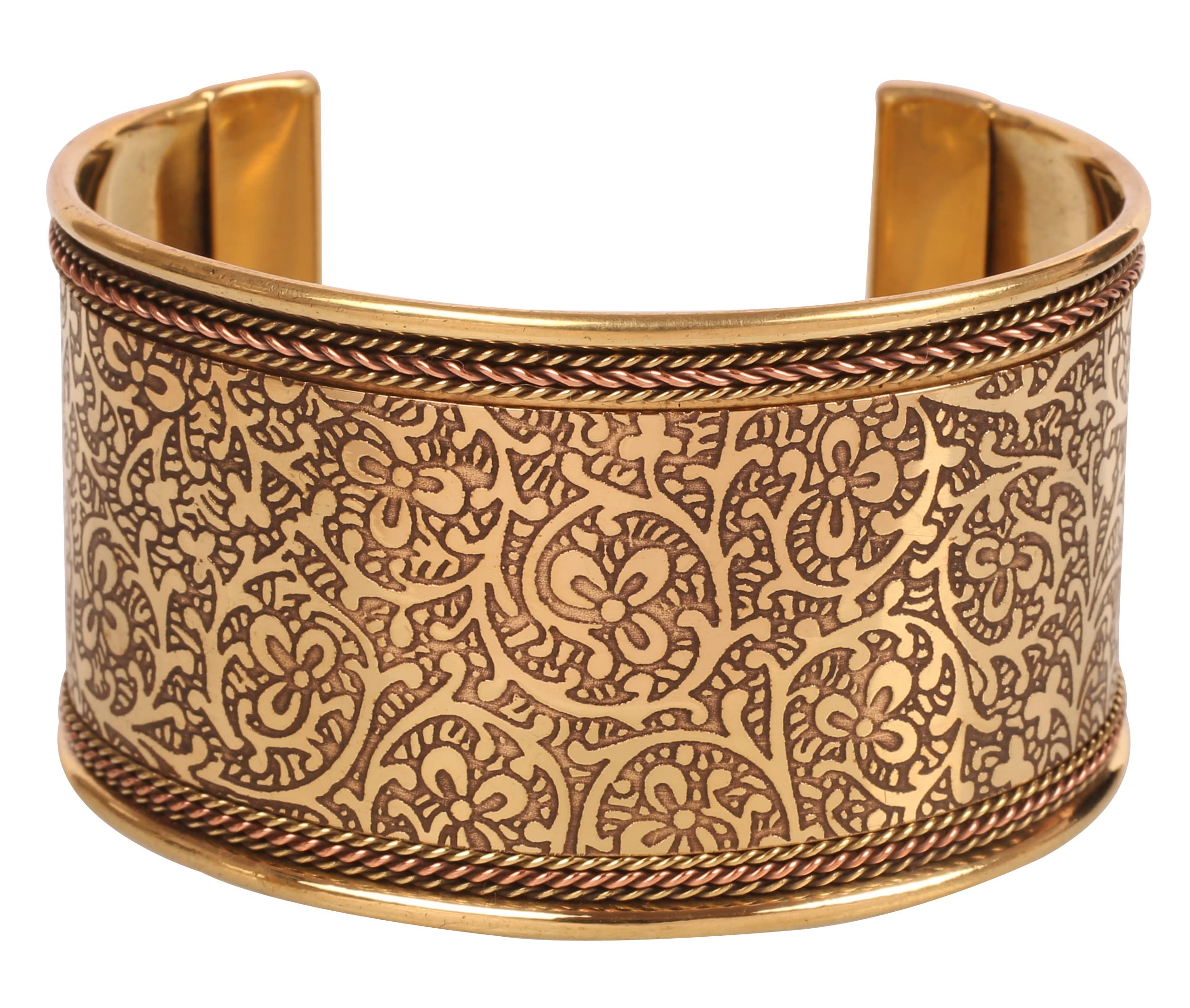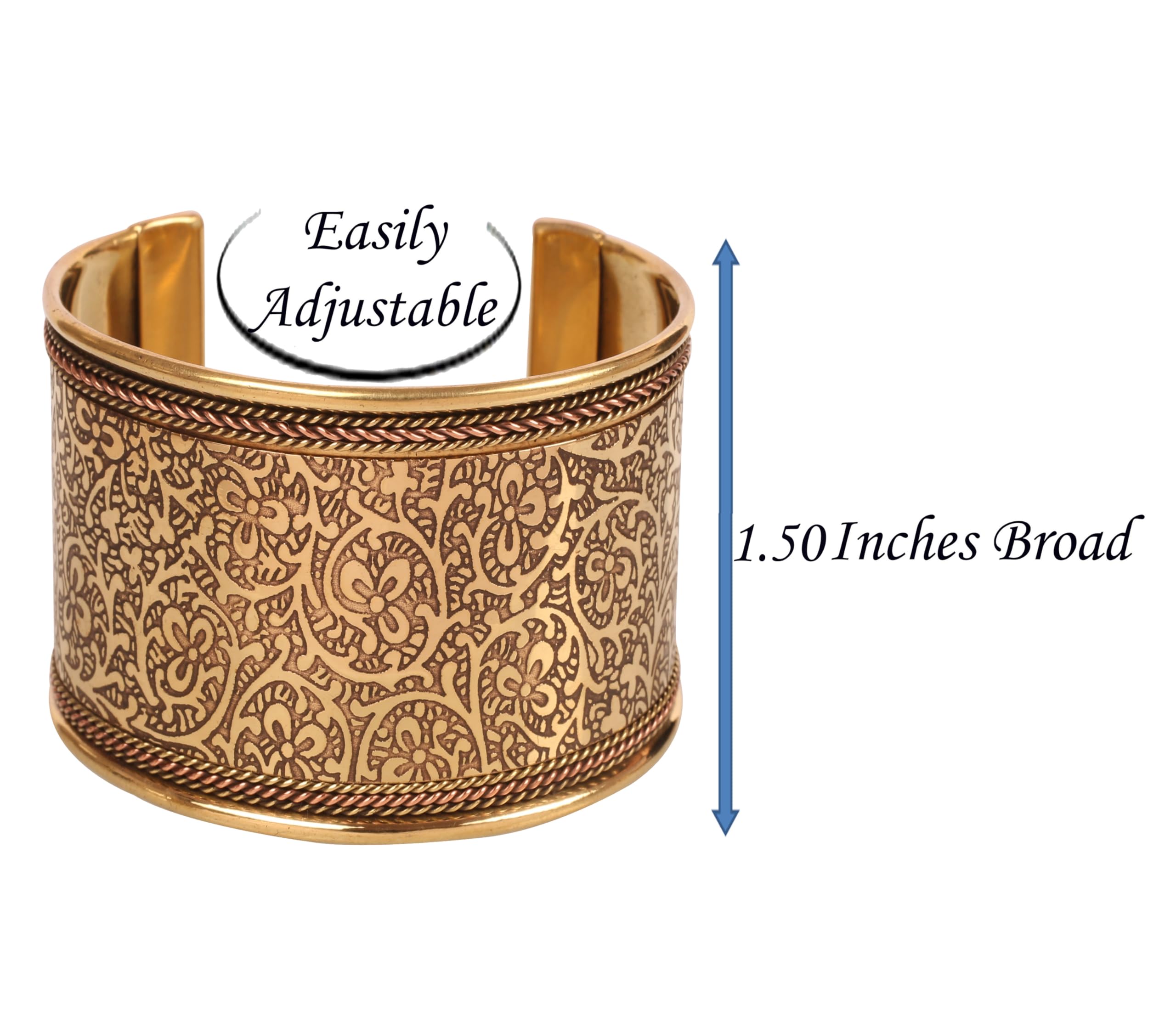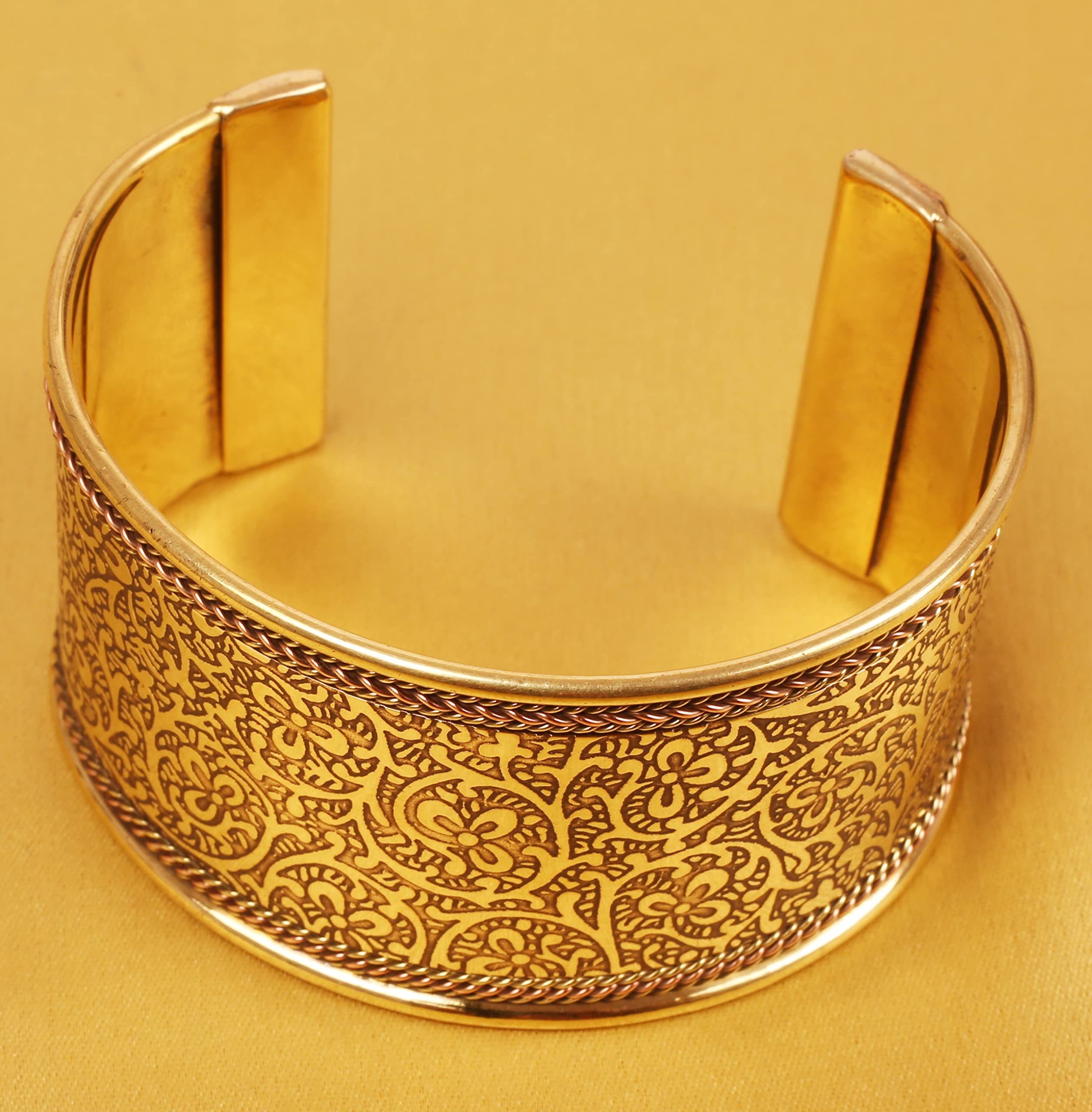 Touchstone Indian Desire Brass Handcrafted Hammered Look Thick Wrist Enhancer Designer Jewelry Cuff Bracelet in Antique for Women