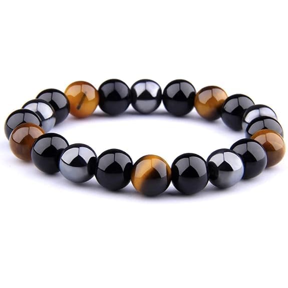 Triple Protection Bracelet a meticulously crafted piece of energy-infused jewelry designed to shield and empower. Each bracelet comes with a lab certificate ensuring the authenticity and quality of the featured gemstones. Immerse yourself in the harmonious blend of Black Obsidian Hematite and Tiger's Eye renowned for their protective properties. Lab Certified Authenticity: At the core of our commitment to quality lies the assurance of authenticity. The lab certificate accompanying each Triple Protection Bracelet guarantees that you are receiving a genuine and powerful combination of Black Obsidian Hematite and Tiger's Eye. Immerse yourself in the pure and unadulterated energy of these crystals knowing that you have a certified piece of nature's marvel at your fingertips. Triple Layered Protection: Delve into the mystical world of crystal healing with the triple protection offered by Black Obsidian Hematite and Tiger's Eye. Black Obsidian forms a formidable shield against negative energies creating a protective barrier around you. Hematite with its grounding properties enhances focus and concentration providing mental clarity during challenging times. Tiger's Eye known for its balancing energy promotes harmony helping you navigate the ups and downs of life with ease.