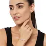 Look absolutely gorgeous by flaunting this exquisitely designed gold plated bracelet. Carved with brass it offers a slender look and exudes elegance. It is accentuated with CZ stones and is an absolute delight to the eye! Style it with a minimal traditional outfit and look like a ray of absolute sunshine!