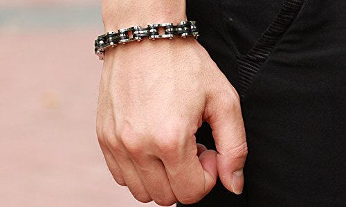 STYLE- The shining tough surface is given to this bicycle chain formation bracelet for men that shows a bench mark of Style and Masculine Trend in market. Highly tough and durable stainless steel makes it long go for rough and tough guys. The Bracelet is suitable for both Casual and Formal Wear. The links of the Bracelet can be removed for adjusting the length.Our Product is perfect for valentines Anniversary day gift for Husband boyfriend Men.