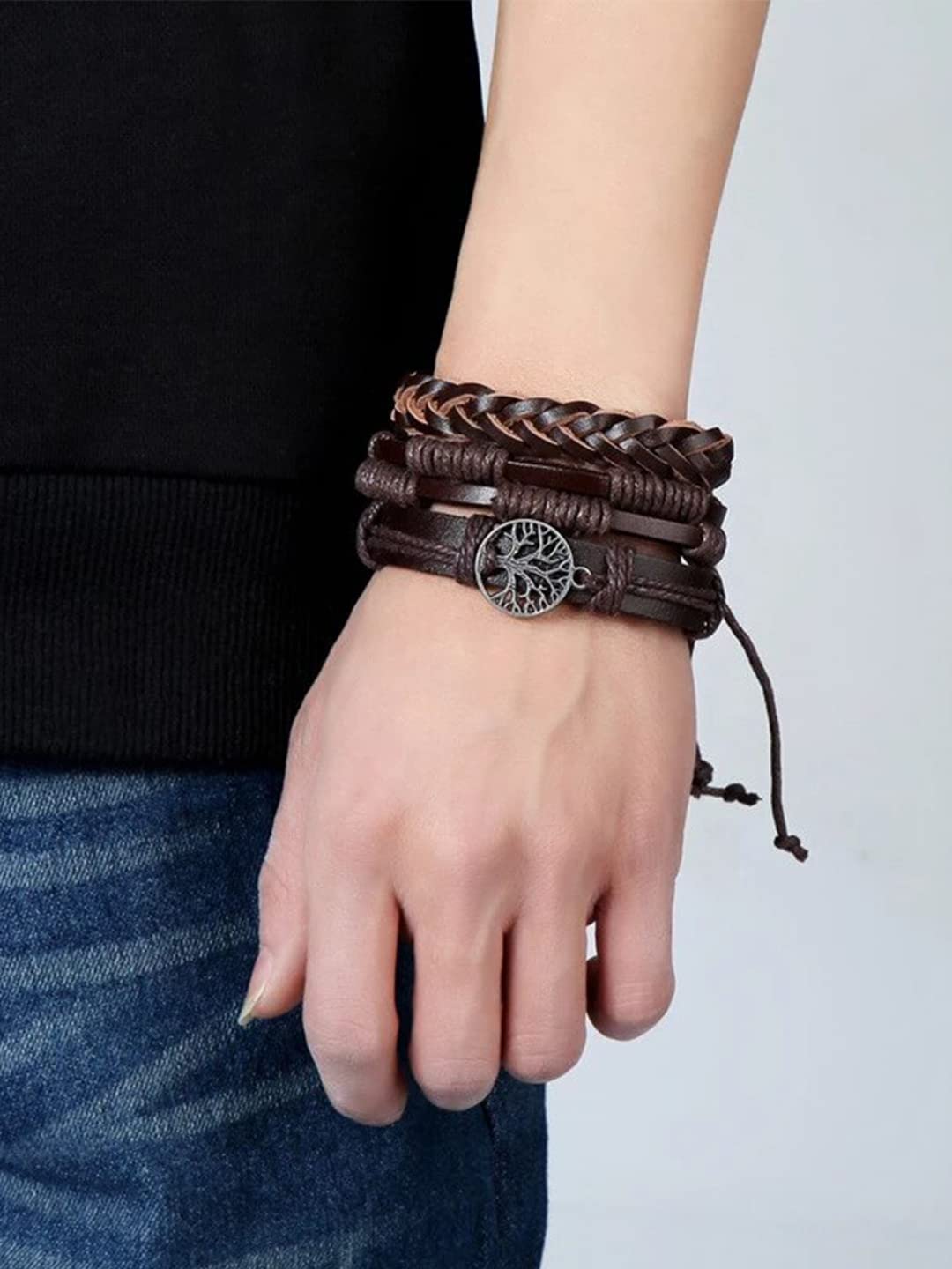Yellow Chimes Combo Leather Wraps Casual Latest Trend Multi Strand Wrist Bracelets for Men and Women (Unisex)