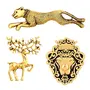 Mahi Combo of Deer, Jaguar and Lion Face Shaped Wedding Brooch / Lapel Pin for Men (CO1105478G), 2.5cm x 3.5cm, Metal